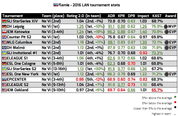 但年轻的flamie身上流着的可是战斗名族俄罗斯的血液,他又怎会轻易的低头呢?在DH莱比锡公开赛与IEM卡托维兹中,不甘寂寞的他以1.48的恐怖Rating统治了几乎所有的对手,莱比锡夺冠并夺得MVP,IEM虽然仅居季殿军之位,任然夺得了EVP之称,flamie从未在这些世界级强队面前低头。