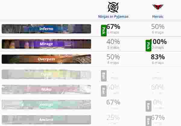 Heroic 1-2 Nip(Inferno 14-16;Mirage 16-9;Overpass 7-16)