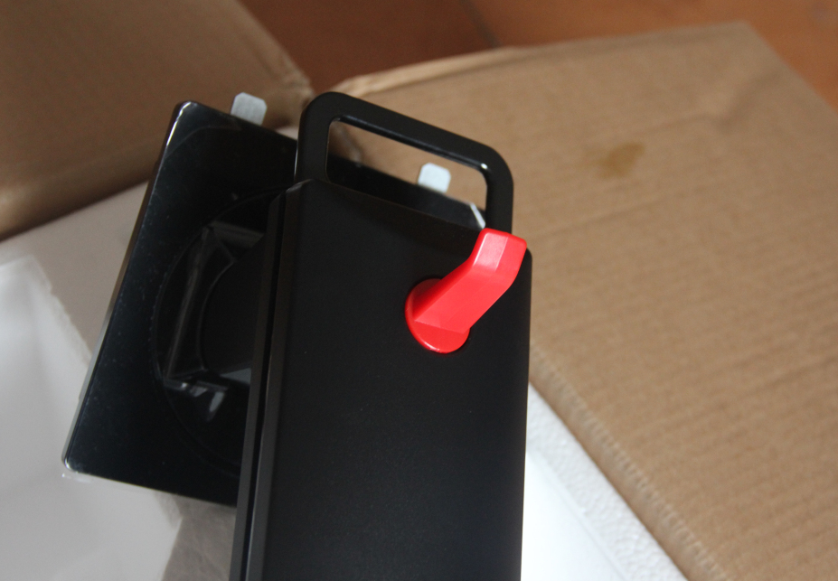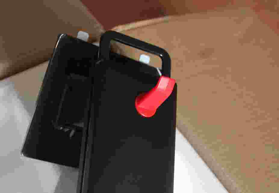 2.在显示器底支架上设计了一个红色的镂空处,可以将各种凌乱的线聚集在一起还我们一个干净整洁的桌面。显示器支架上端还设计了一个挂钩,这个挂钩不仅可以让玩家们将耳机挂在上边同时还可以当做鼠标线夹使用。显示器的底部还设计了金属提手便于玩家搬移显示器,