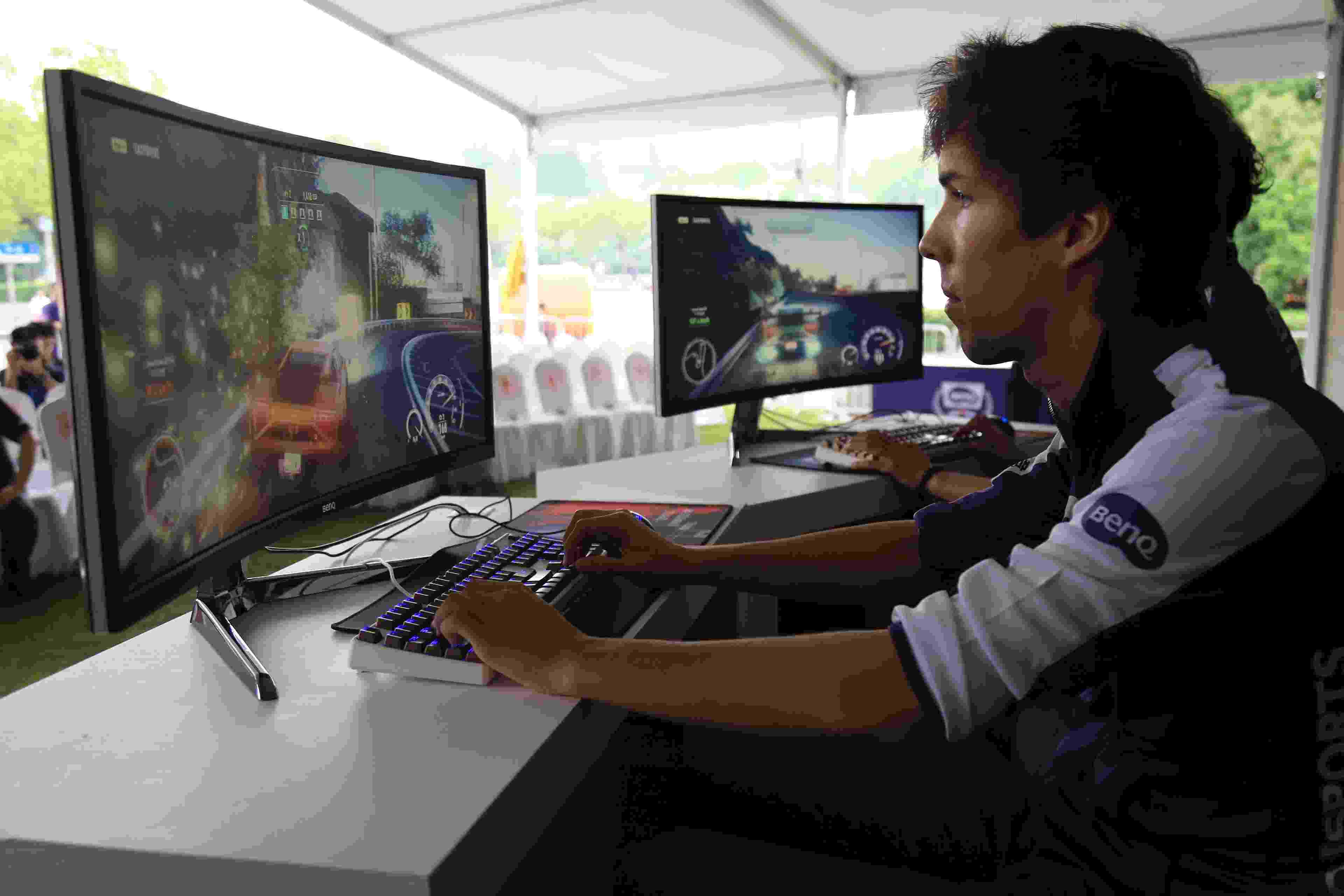 在简洁隆重的签约仪式后,明基上海电竞馆正式宣布开业。紧随其后的是水友挑战赛及重磅压轴的Grubby、Alex、明基曲面王“电竞三王争霸赛”。不过比赛项目既非Grubby擅长的魔兽争霸,也非Alex钟爱的CS,而是引爆速度与激情的极品飞车大战。摆在冠军面前的是具备全球最大曲率和144Hz超高刷新率的明基曲面电竞显示器,以环抱式体验和极致沉浸感著称。正所谓游戏是人类的天性!两位老男孩互相追逐不亦乐乎,也让粉丝们大饱眼福。