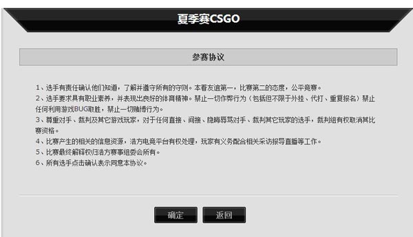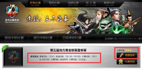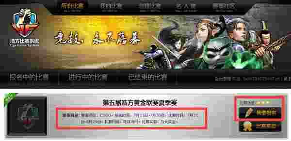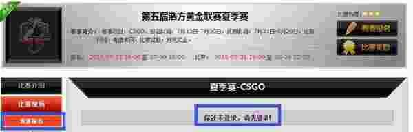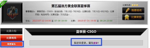 1.点击浩方赛事报名网站http://matchs.cga.com.cn/FRONT_UI/MatchShow.aspx,进入报名页面在“浩方黄金联赛夏季赛”赛事处选择我要报名,进入CSGO报名看到参赛协议确定。