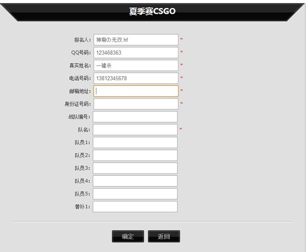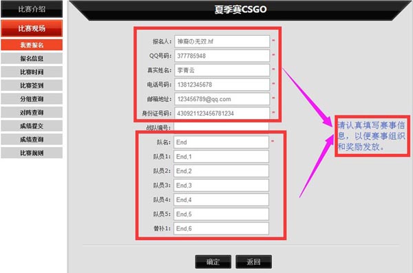 3.资料填写如下图请按照队员信息认真填写,以便后期赛事组织和奖励发放。