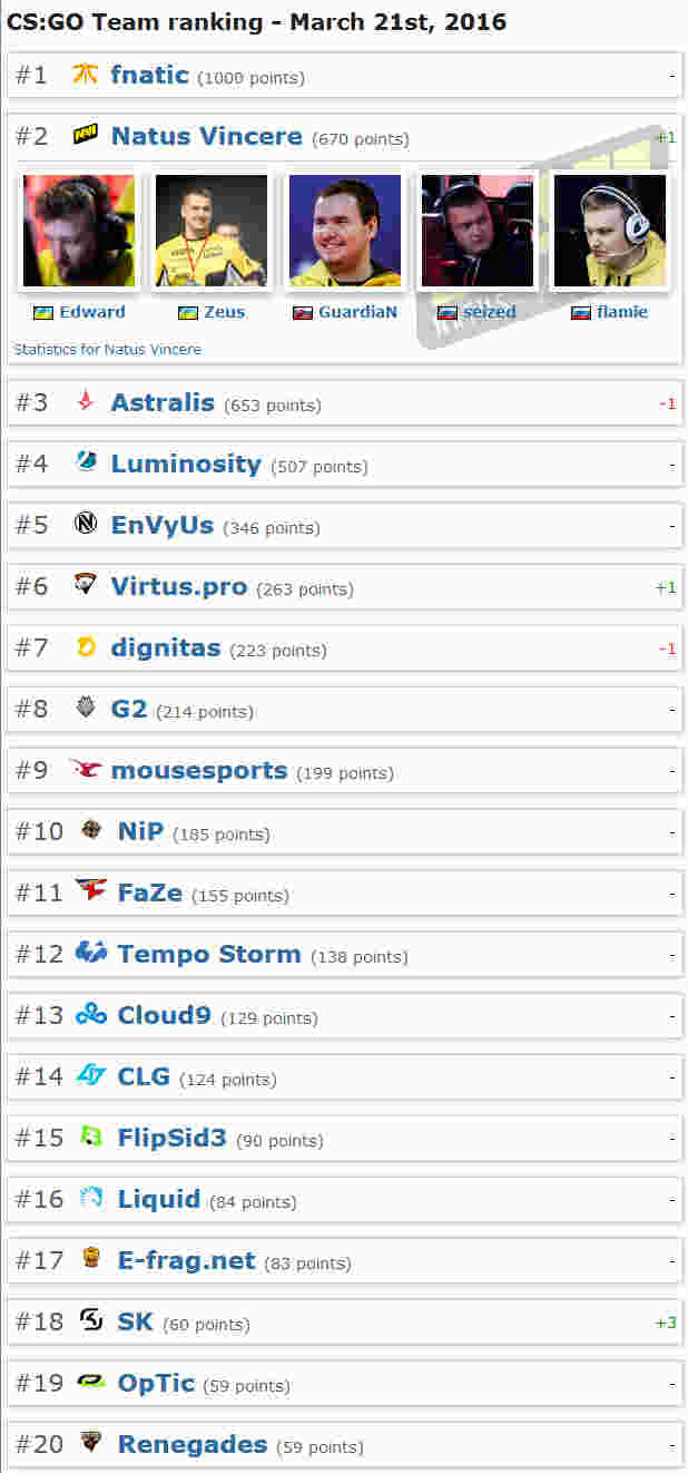 01世界战队排名更新 Na'Vi反超Astralis
