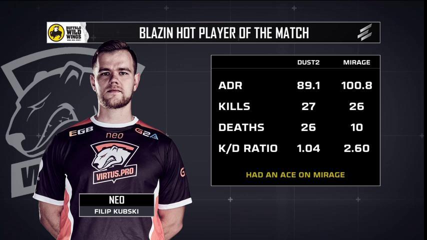 第二场比赛来到VP擅长的mirage,他们先做CT半场守下了12分,彻底抹杀了Gambit翻盘的希望,以2-0的总比分晋级落选赛第二轮,下一个对手是战胜F3的澳洲一哥Renegades,双方的胜者将获得最终8强的席位。
