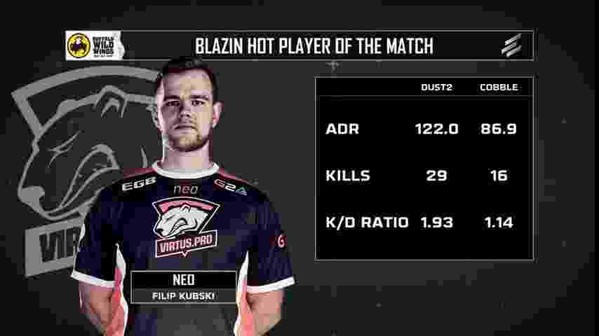 VP和NiP的比赛没有想象中那么激烈,战神Neo和Snax分别在dust2和cobblestone上主宰了比赛,NiP整体状态比较疲软,两张地图加起来仅有Get_RiGhT和pyth拿到超过30个frag,这样状态的NiP是无法和VP较量的。