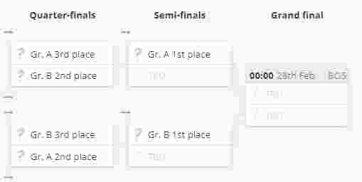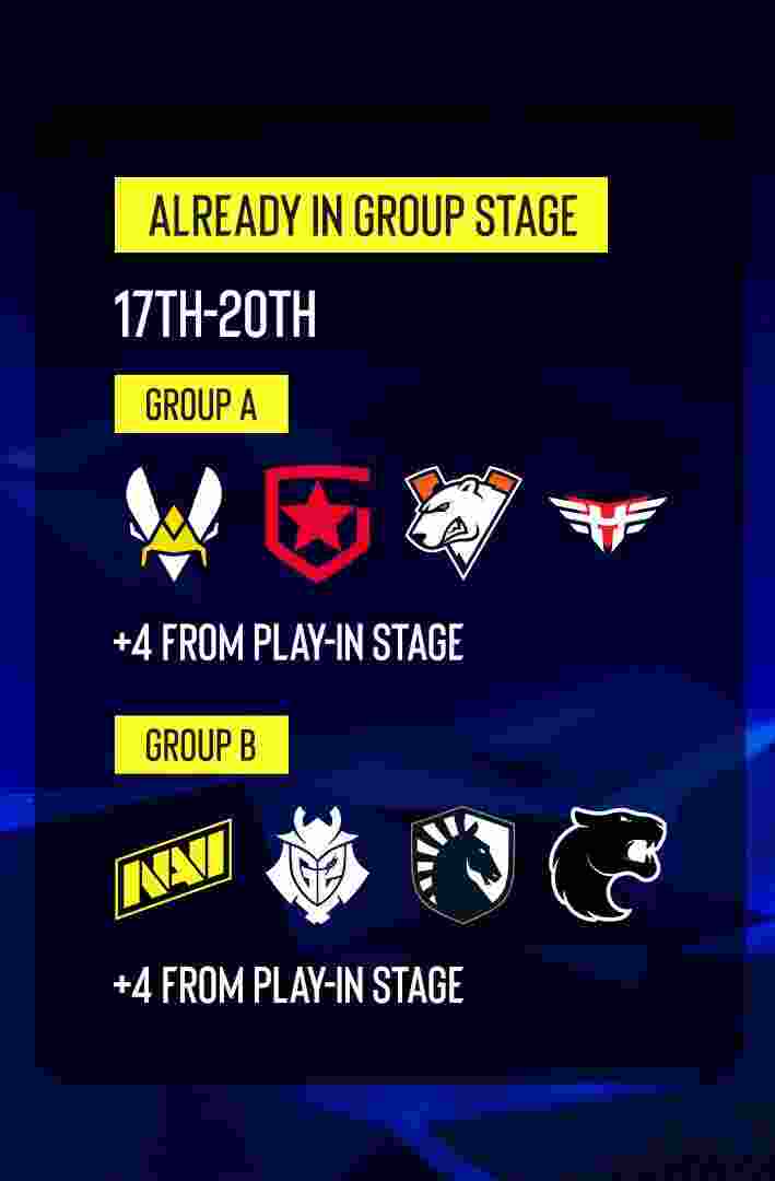 赛制:全程采取BO3双败淘汰赛制,分为2个小组,每个小组8支队伍。每个小组的前三名将进入淘汰赛。小组第一直接进入半决赛,小组二、三名进入四分之一决赛。
