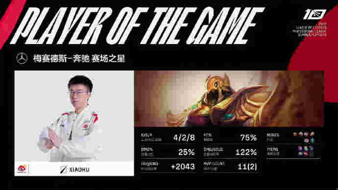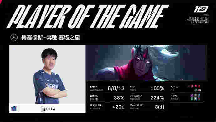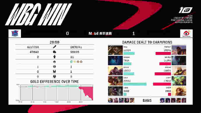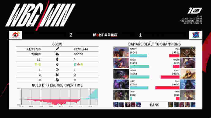 比赛最后一波,第37分钟,WBG推掉中下两路高地转上,Xiaohu小炮跳脸先秒芮尔再杀鳄鱼收下双杀,残局WBG借助复活甲向前推,LNG众人借助门牙塔牵扯!GALA厄斐琉斯清辉夜凝被Weiwei金身规避,自己输出拉满还是最终被WBG三人压起身围杀!WBG打出2换5团灭LNG,先收下本场比赛的赛点!