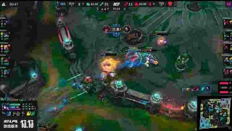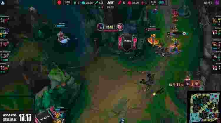 13分钟TES中野在下路抓死安妮,15分钟先锋团爆发,TES打出零换四!