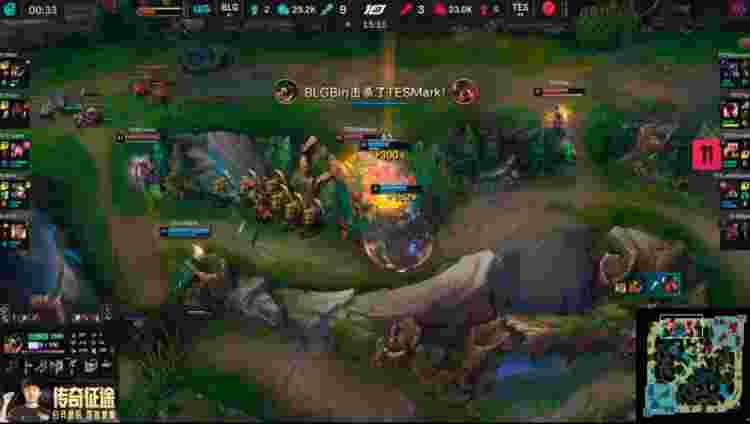 10分钟BLG再次击杀盲僧,并拿下小龙。随后Bin鳄鱼在上路越塔击杀了贾克斯,不过TES中野赶到将鳄鱼击杀。