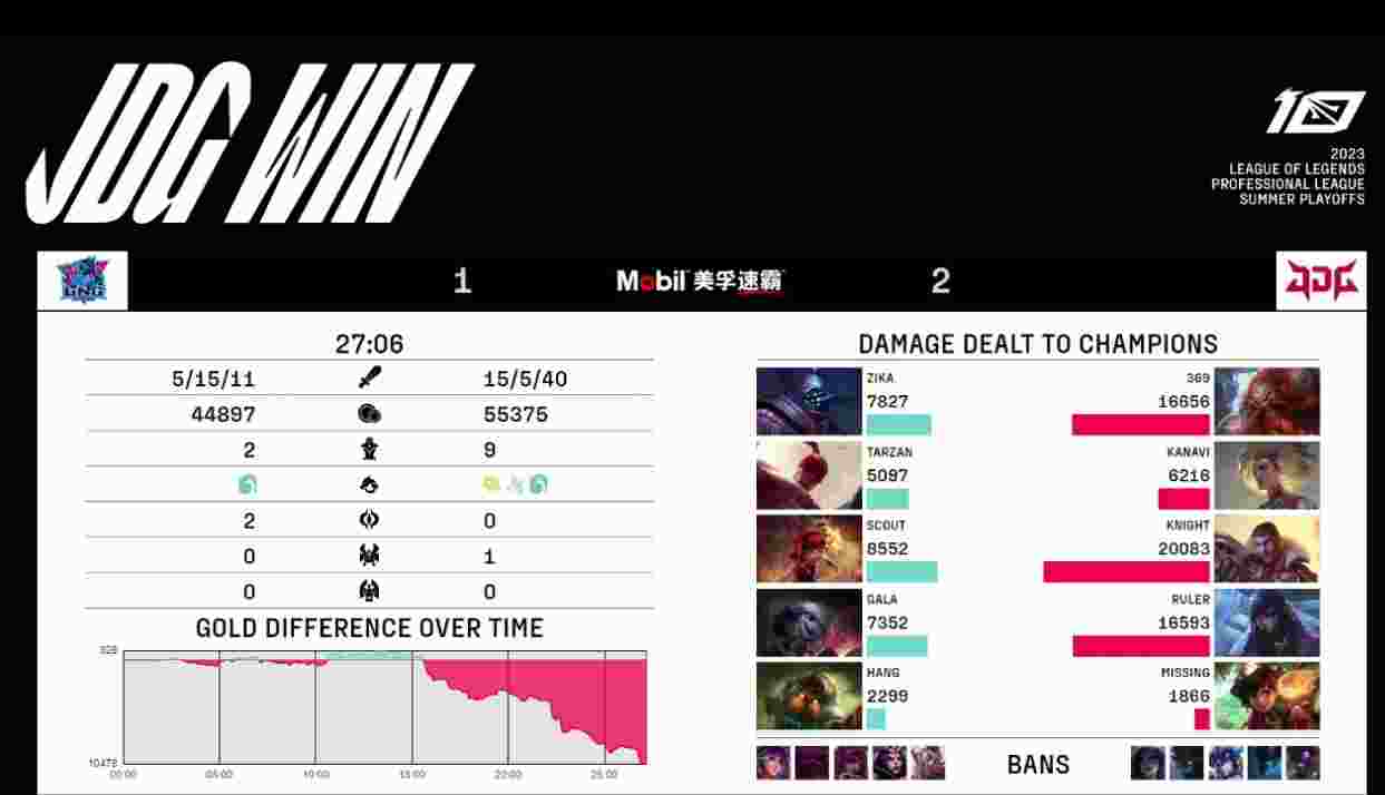 24分钟JDG登上LNG高地,击杀多人并拆掉双子塔后撤退。