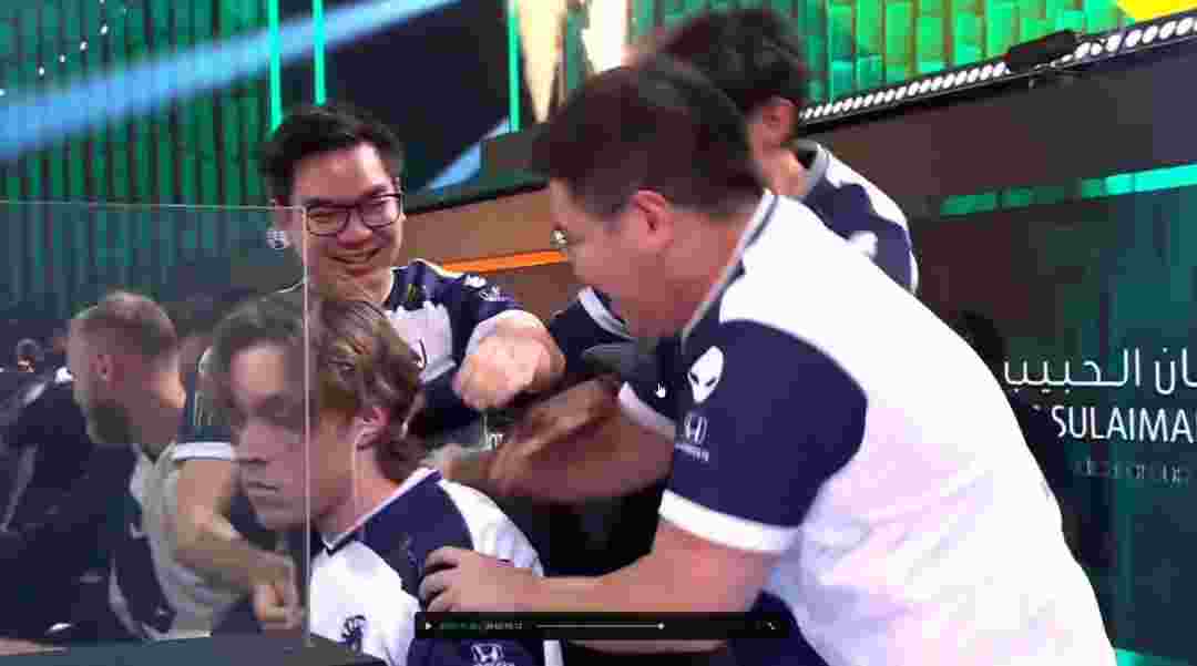在利雅得大师赛的胜者组半决赛Liquid对阵Talon的决胜局中,最后团战Talon击杀了滚滚和虚空,两个大哥买不活,23savage的水人冲进血泉杀人,并点了塔防,23savage虐泉成功后直接从椅子站起振臂欢呼,半场开香槟!