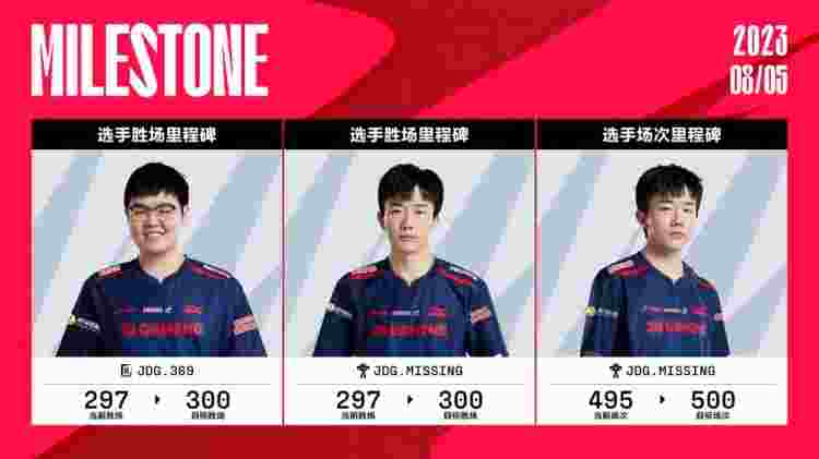 JDG.MISSING当前出场数495,距离500场成就仅差5场。