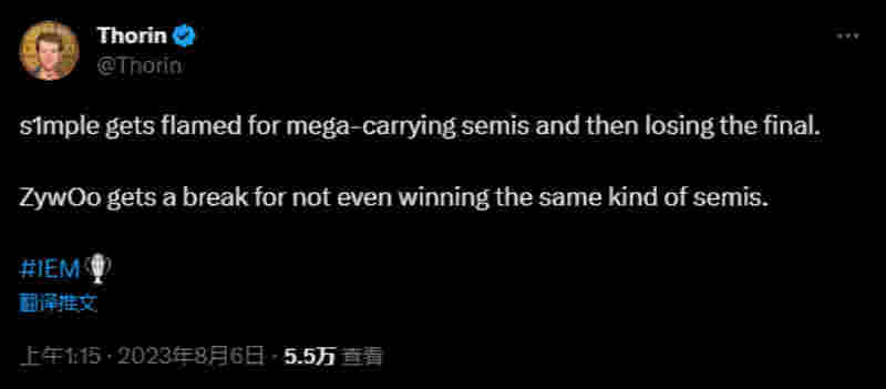 “但是ZywOo连同样的半决赛都没赢,便可以获得(舆论的)喘息。”
