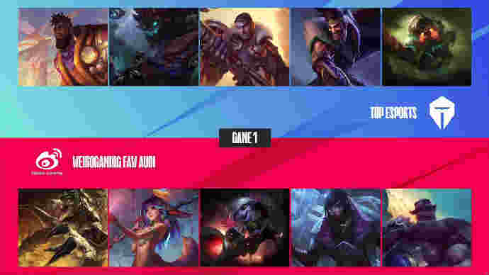 21分钟,TES下路推进拔掉WBG水晶在WBG高地游泳,WBG无力防守,TES破掉WBG中路水晶,大军压境,TES一波推平WBG基地先下一城。