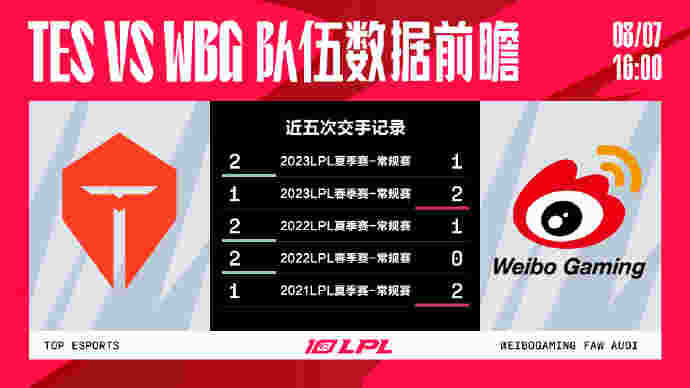 从历史交手记录来看,双方互有胜负,最近的就是今年夏季赛,TES2:1战胜WBG,而且TES近五次战胜了其中的三次,是更加优势的一方,但是WBG实力也不差,本次交手胜负难说!