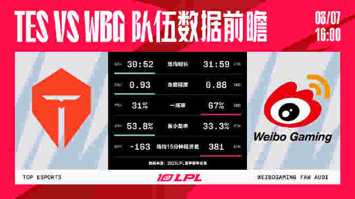 北京时间8月7日,英雄联盟赛事数据发布了今日冒泡赛TES与WBG的对阵数据,就让我们一起来看下双方的数据对比!