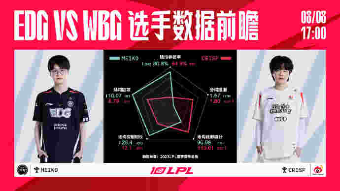 北京时间8月8日,今日LPL世界赛资格赛(冒泡赛)关于四号种子的归属权,相信双方都已经摩拳擦掌,EDG与WBG究竟谁能拿下最后一张世界赛门票,首先双方都无法接受失败,毕竟输了一年的心血就付之东流!下面是英雄联盟赛事数据给出的数据对比图。