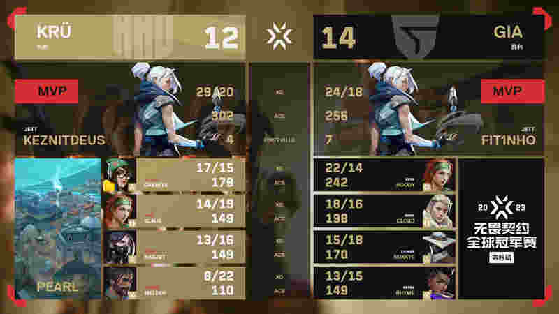 本张地图KRU 12:14 GIA,MVP给到了Fit1nho选手。