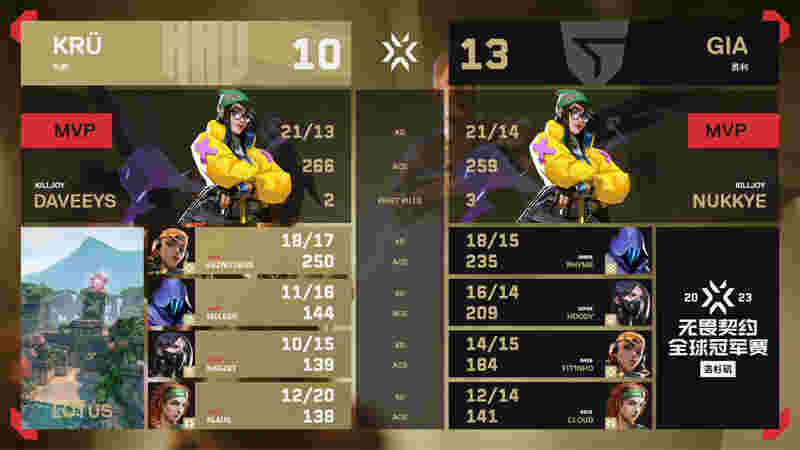本张地图KRU 10:13 GIA,MVP给到了Nukkye选手。