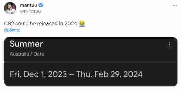 Mateusz Wilczewski | mantuu在推特内涵了一遍V社说的夏天发布CS2,众所周知,地球上的北半球和南半球在气候上截然不同,大多数生活在北半球的人对于夏天的理解一般都是从每年的5-6月到8-9月,然而,生活在南半球的人理解的夏天却是前一年的12月至次年2月的时间。