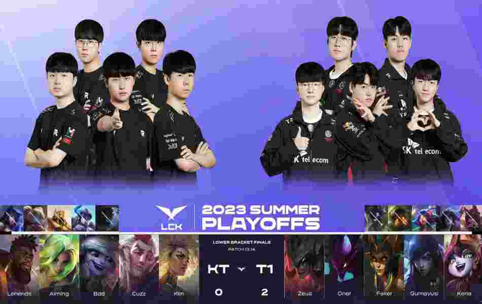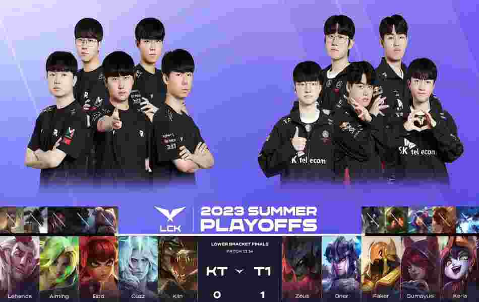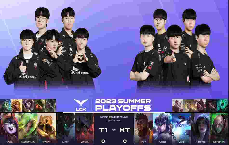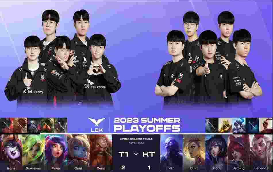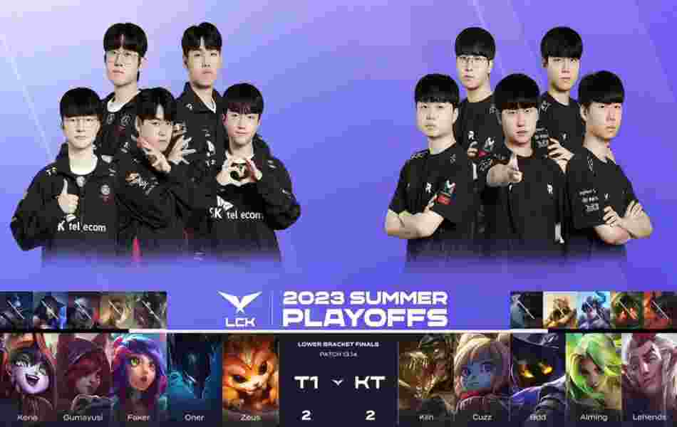 北京时间8月19日,2023年LCK夏季赛季后赛败者组决赛,T1鏖战5局成功3:2击败了KT挺进了决赛。