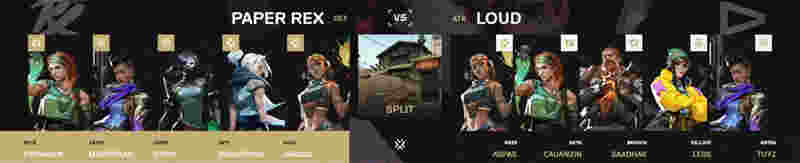 攻守互换,下半场手枪局,双方在B包点进行了一波乱战,最后是由PRX拿下手枪分。随后双方各自拿下一回合福利分,PRX则是在长枪局开始发力,直接将比分拉开至12:7,率先拿到了全场比赛的赛点。随后LOUD连续追回三分,比分追至10:12。在第23回合,LOUD派出cauanzin一个人佯攻A大,剩下4人速攻B区,PRX则是及时察觉到了LOUD的进攻意图,放任勾引的cauanzin不管,迅速集结守B,一波交火PRX打出了1换4,最后从A区匆匆赶来的cauanzin也无力回天,13:10,PRX拿到了全场比赛的胜利。