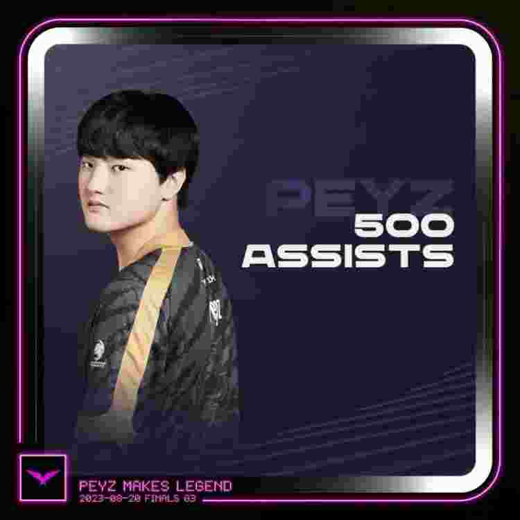 北京时间8月20日,在2023LCK夏季赛决赛中,GEN战队Peyz选手达成LCK生涯500助攻里程碑。