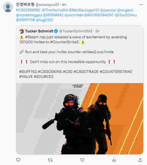 随着CS2发布日期的临近,近日有国外网友收到了骗子发的所谓CS2测试资格邀请链接,这些链接看起来与CS官网地址非常像,但仔细分辨的话会发现这个域名上加了s,或者使用org等其他结尾形成假官网域名。