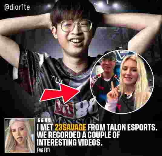 这明显是标题党,双方只是网红之间的互相吹捧增加热度罢了。Eva Elfi此行是为Talon的Ti12之旅呐喊助威,网友戏称“有趣的小视频”是Eva Elfi邀请23Savage一起开香槟~