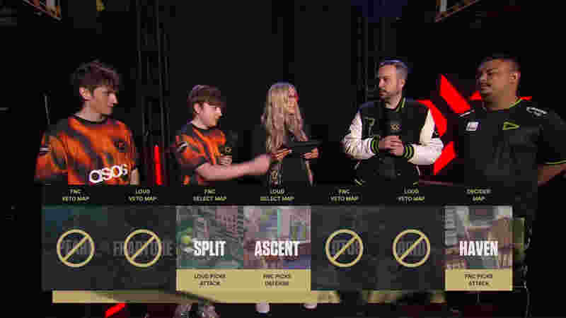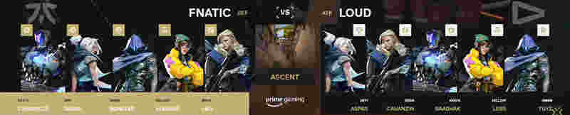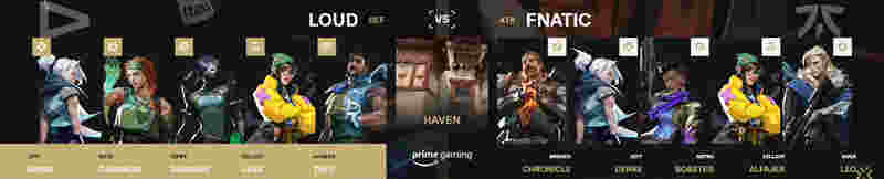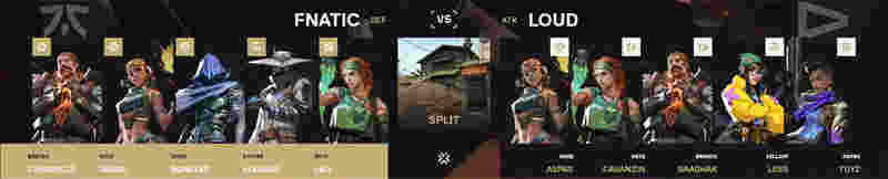 上半场LOUD率先进攻,手枪局LOUD从中路摸入B区,遭遇FNC的埋伏,一波人员互换LOUD顺利打出3换5,手枪分拿下。随后LOUD将比分拉开至3:0,而FNC经过调整连追三分。第7回合关键局,aspas再次拿到双杀,破点之后FNC选择保枪,LOUD再度领先。之后双方比分交替上升,而LOUD的枪法在上半场更在线一些,7:5,上半场LOUD小优。