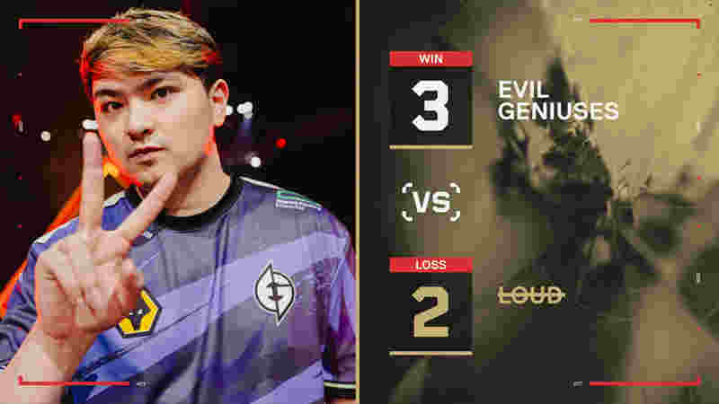 易边再战,下半场EG开启追分模式,EG连追5分,C0M更是再度给大家展现他的神奇绕后。在第15回合中,C0M绕后打掉LOUD两人。在第19回合EG的进攻被LOUD成功守住,后续LOUD继续拿分,成功拿到赛点。在第21回合中LOUD在B点成功守包架掉EG的人,LOUD拿下第三局比赛胜利。