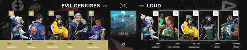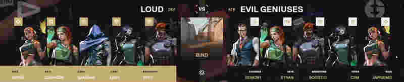 上半场开局EG连拿5分,LOUD曾有多次机会,但残局抓timing的机会,LOUD总是差那么一下。在第6回合,LOUD一改前态,直接四人从B大前压出来,将EG五人打掉,拿到首分。LOUD的aspas手感上来了,在第7回合拿到三杀,将起到大枪冥驹的EG经济打崩。两队互相拿分,但EG领先LOUD2分,上半场EG 7-5 LOUD。