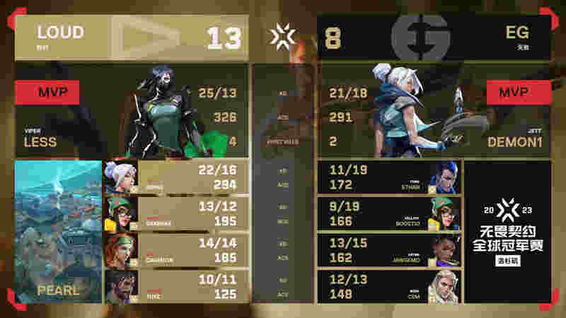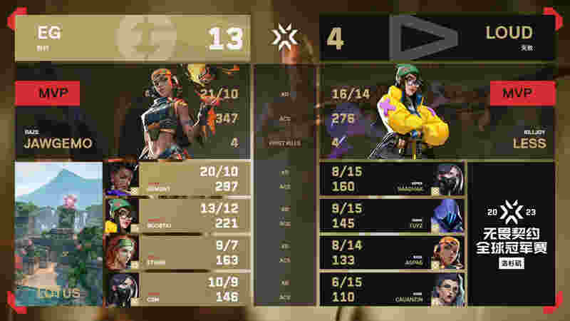 本张地图EG 8:13 LOUD,MVP给到了Less选手。
