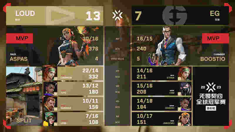 本张地图EG 7:13 LOUD,MVP给到了aspas选手。