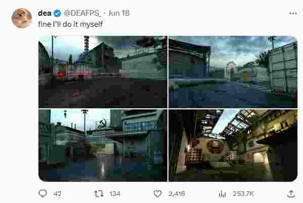 CSGO社区玩家dea近日分享了自己制作的CS2版本的de_Cache。由于V社并没有推出Cache这张地图,因此作者早在今年6月18日便在自己的媒体账号发了“叉车”的图片并说:“好吧,我自己做!”。