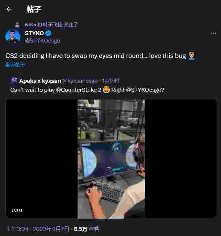 Damjan Stoilkovski | kyxsan分享了一则CS2的离大谱BUG。乍看之下以为是两个屏幕,仔细一看是狙击枪的镜头被分成了两半。某种程度上也算是实现了左手持枪的夙愿。