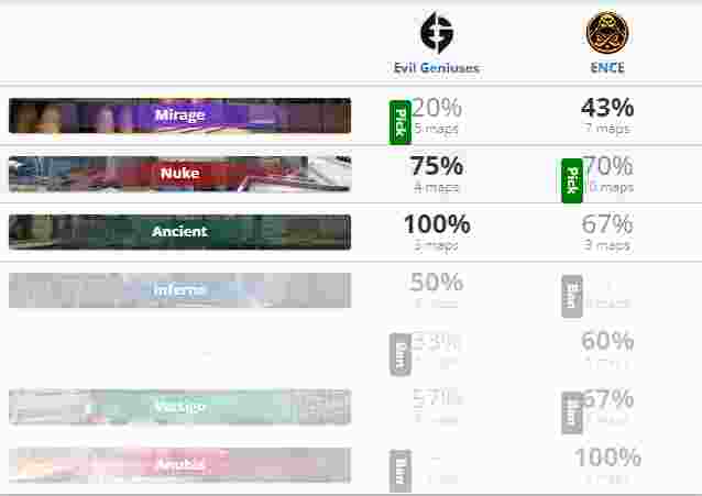 Evil Geniuses 0-2 ENCE(Mirage 9-16;Nuke 14-16)