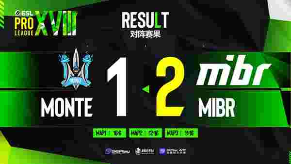 易边再战,手枪局CT抱团推进成功,继续扩大比分领先,来到长枪局,MIBR的巴西式冲锋成功打了CT一个措手不及,拿到一分,但是Monte很快回过神来,长枪局回防A区成功,把比赛继续掌控在手上,后续的比赛中土匪再也没能拿分,Monte 16-6赢下图一。