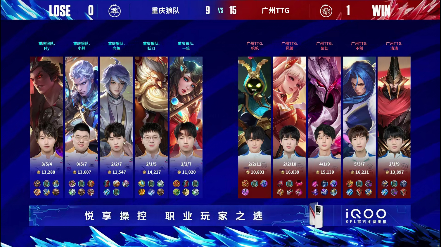 2023KPL夏季赛总决赛【广州TTG 1:0 重庆狼队】广州TTG 拿下第一局比赛!