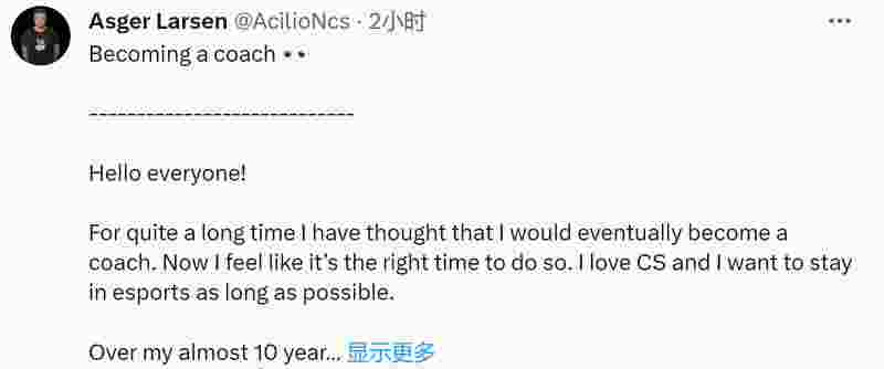 Asger Larsen | AcilioN在社交媒体上发文寻找新工作,表示自己已经是自由人身份,未来想开始一段教练生涯,并且接受任何赛区的合同。