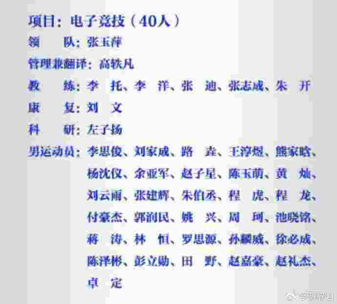 亚运会中国代表团电子竞技项目代表队四十人大名单公布
