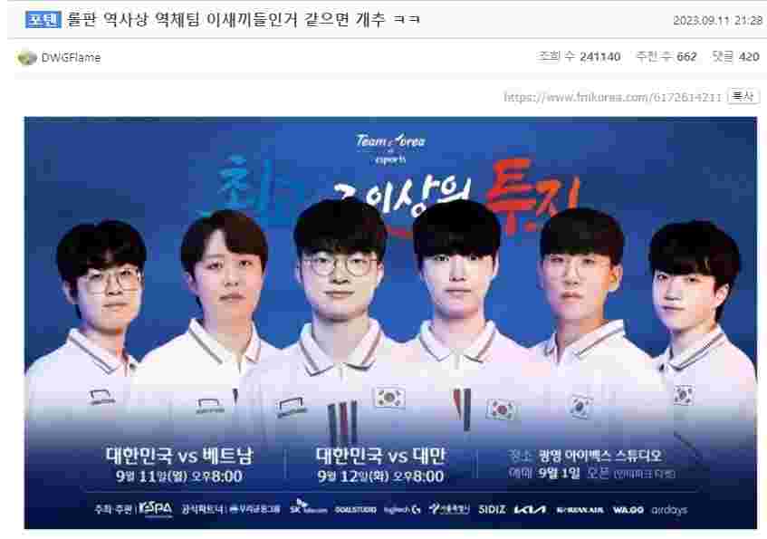 韩国网友就韩国亚运代表队的完美表现做出热议: