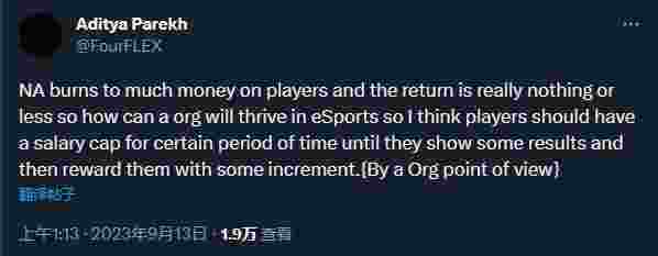 ”北美电竞投入过多资金在选手身上,而回报却相对较少甚至没有,所以一个组织如何在电竞中蓬勃发展,我认为应该在一定的时间内给选手设立薪资上限,直到他们取得一些成就,然后才给予适当的加薪(从组织的角度来看)。“