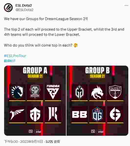 DOTA2赛事运营商ESL One消息,梦幻联赛S21各战队分组已出炉。