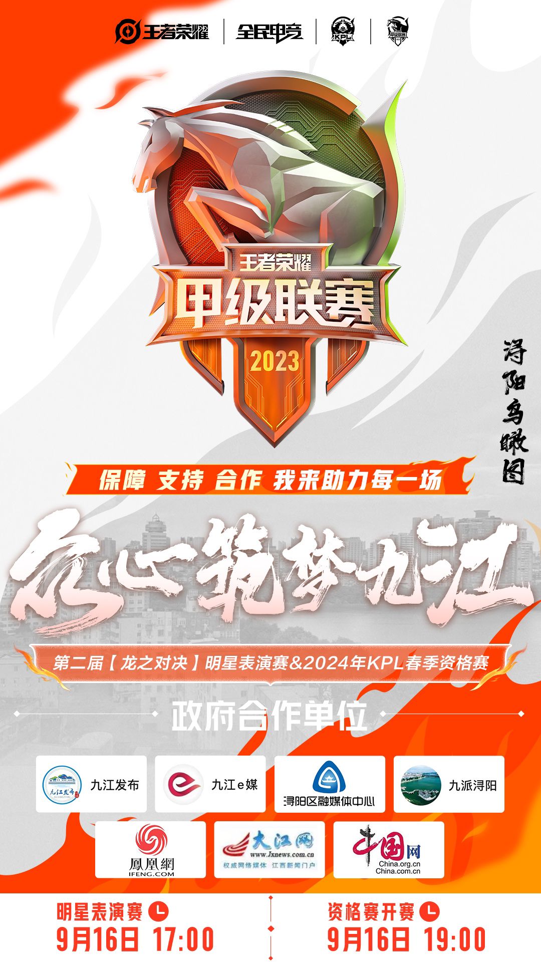 2024年KPL春季资格赛由九江发布、九江e媒、浔阳区发布、九派浔阳、凤凰网、大江网、 中国网 倾情捧场共筑九江!