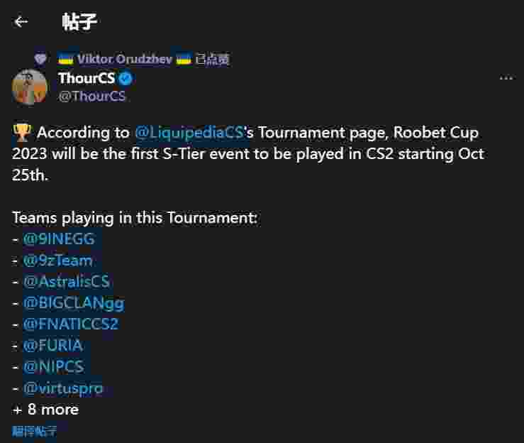 根据液体百科页面显示的赛事规划表,RB Cup(袋鼠杯)将是首场CS2 S级赛事。该赛事的时间为10月25-11月2日,比赛共16支参赛队伍,奖池25万美元。