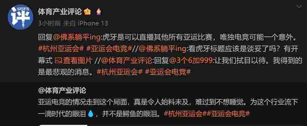 第十九届杭州亚运会将于2023年9月23日正式开幕,而今日媒体人“体育产业评论”表示亚运电竞或将无法电视、网络平台直播,作为合作平台,虎牙可以直播大多数亚运项目,但电竞除外。
