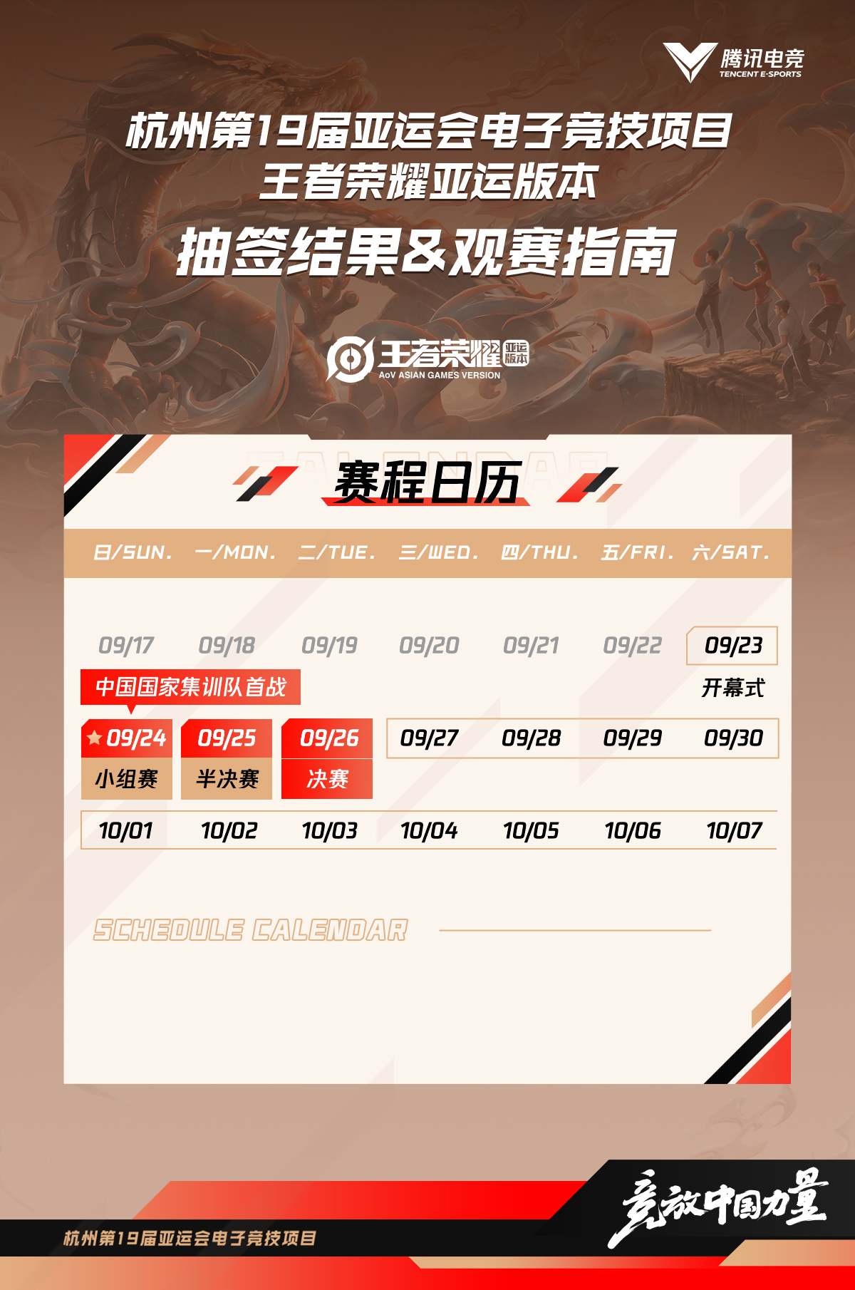 亚运王者荣耀亚运版本项目观赛指南同步上线!最全赛程信息一手掌握,结合抽签分组信息,关注热点赛事不迷路!期待我们的电竞健儿取得好成绩!