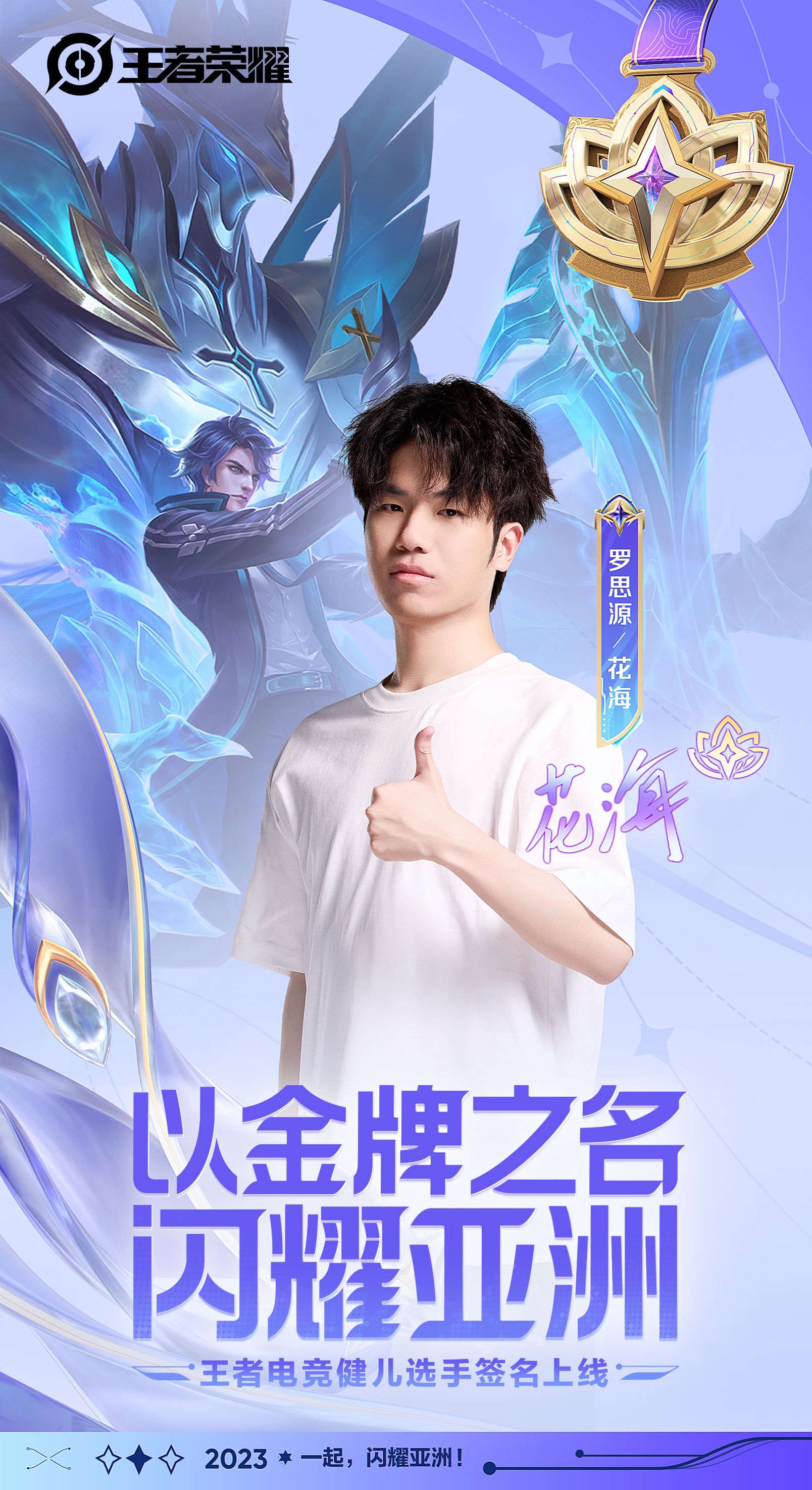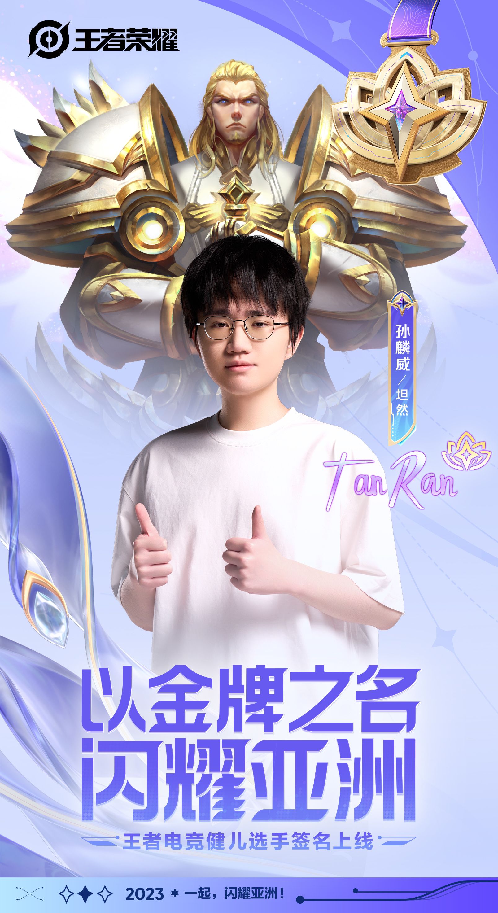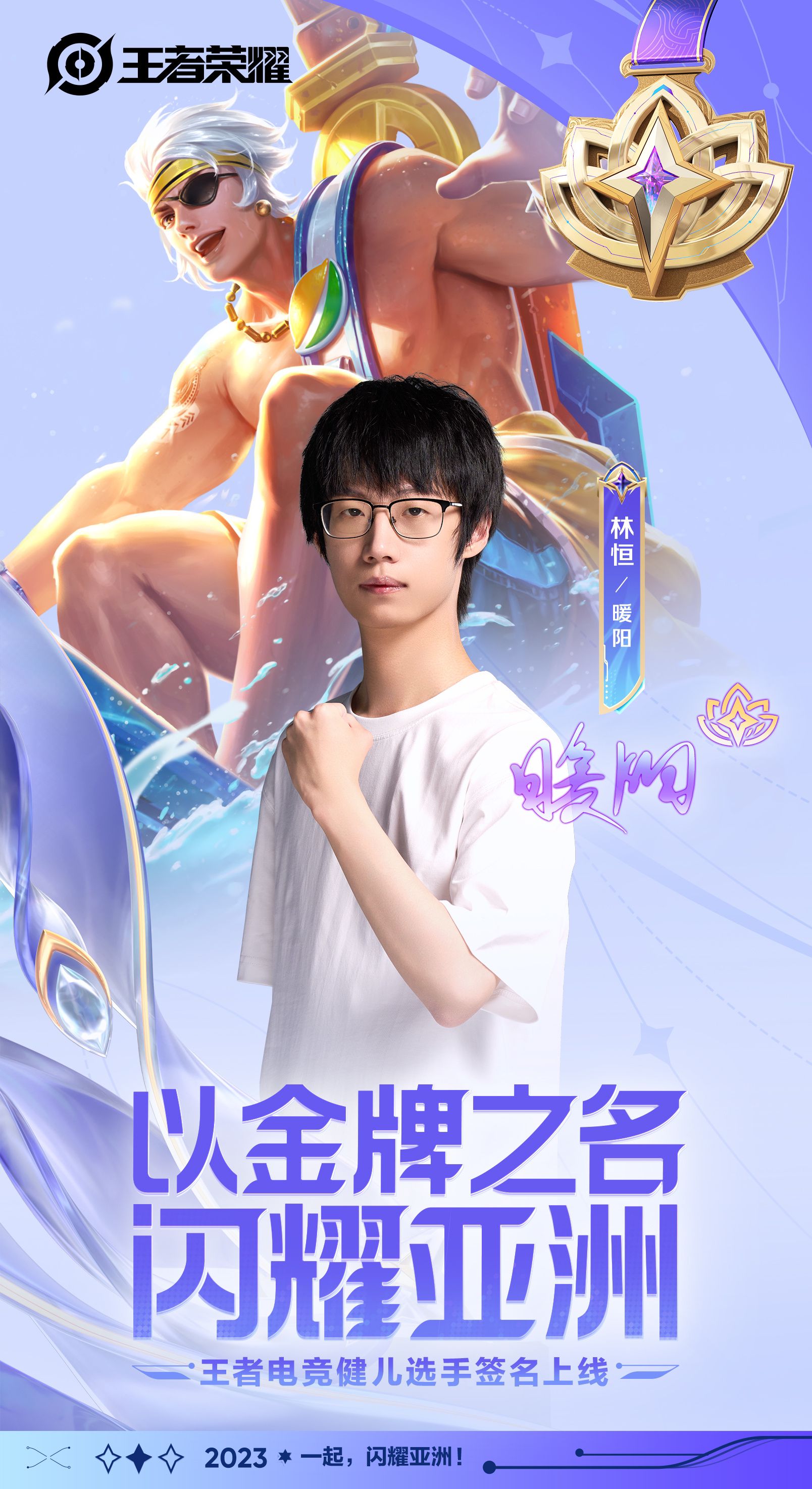 为恭喜广州TTG阿豆、eStarPro花海、上海EDGMMing 、北京WB暖阳、eStarPro坦然、AG一诺在杭州亚运会为电竞项目夺得首金,六款专属签名海报上线游戏,和王者电竞健儿一起同享荣耀 !