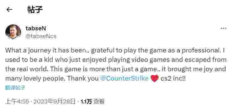 Johannes Wodarz | tabseN:一段多么奇妙的旅程。满怀感恩之心能成为CSGO的职业选手。我曾是一个借助游戏逃离现实的网瘾少年。CS对我来说已经远远不是一款游戏那么简单,它带给了我快乐和许多可爱的人。谢谢你CS!CS2来了!